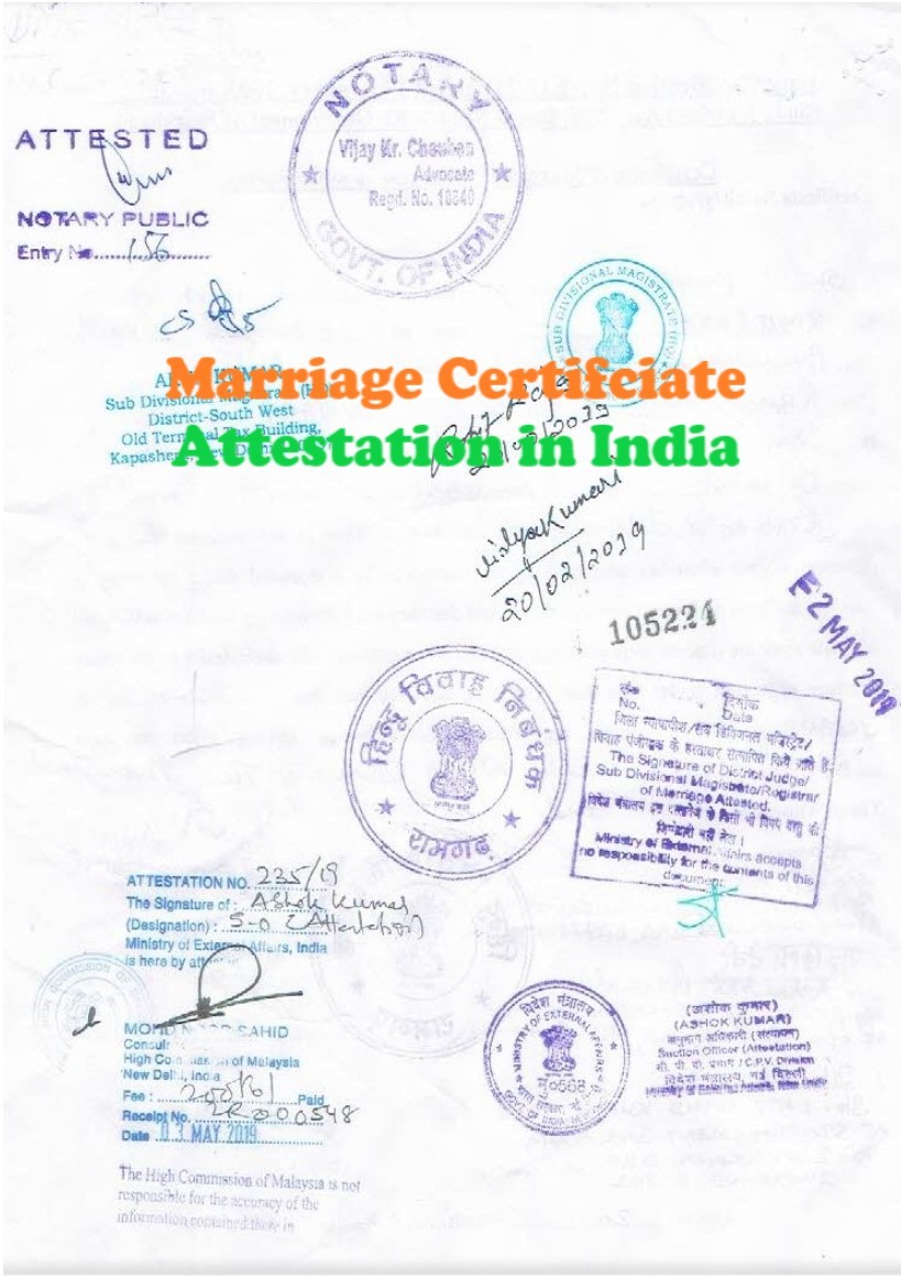 The Attestation of Marriage Certificate from Home Department / GAD / RAC is a very much time consuming as well as hectic process. The process of Marriage Certificate Attestation, prior Ministry of External Affairs (MEA) Certification, is different for separate states. To keep the points in focus, the MEA has given the special authority to some of the selected Sub Divisional Magistrates (SDM), Govt. of NCT-Delhi to attest the documents prior MEA, in special cases.